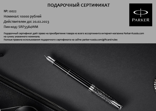Подарочная карта Parker - Официальный дилер PARKER в Рудном
