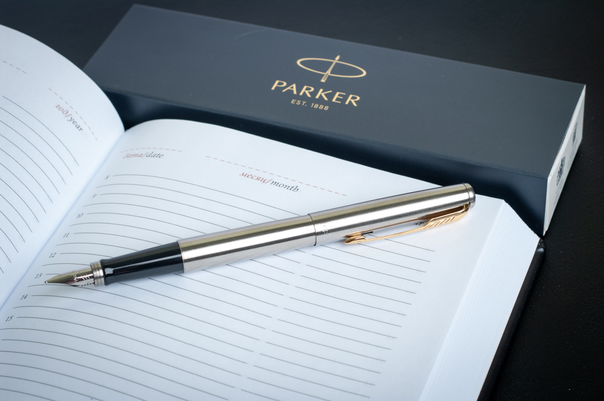 Перьевая ручка Parker Jotter Stainless Steel GT от официального дилера Parker в Рудном. Все ручки Паркер поставляются в фирменном футляре.