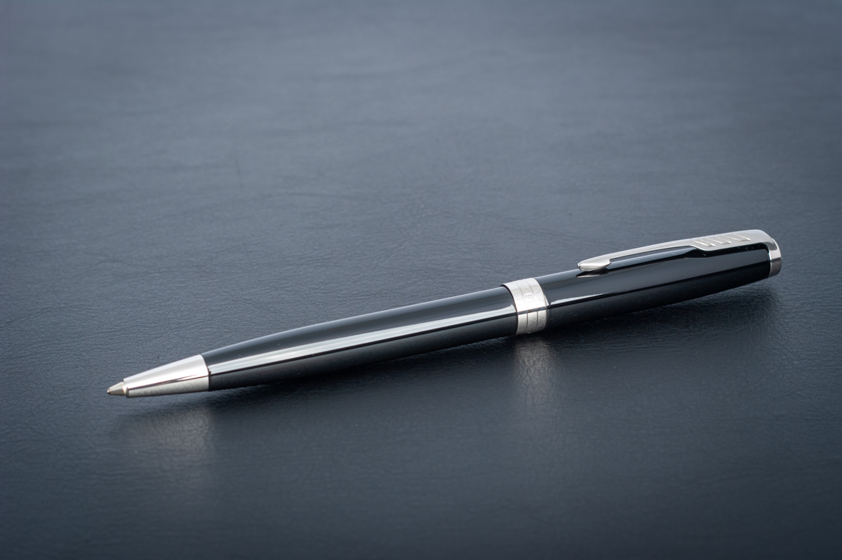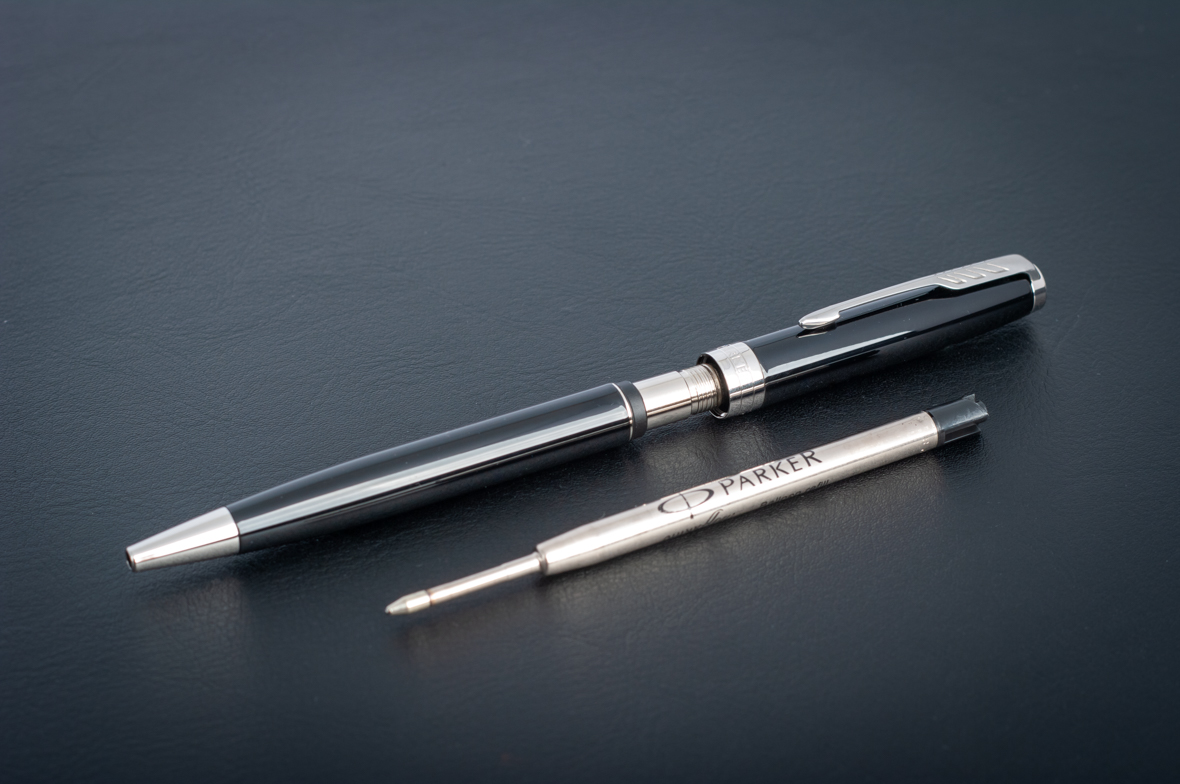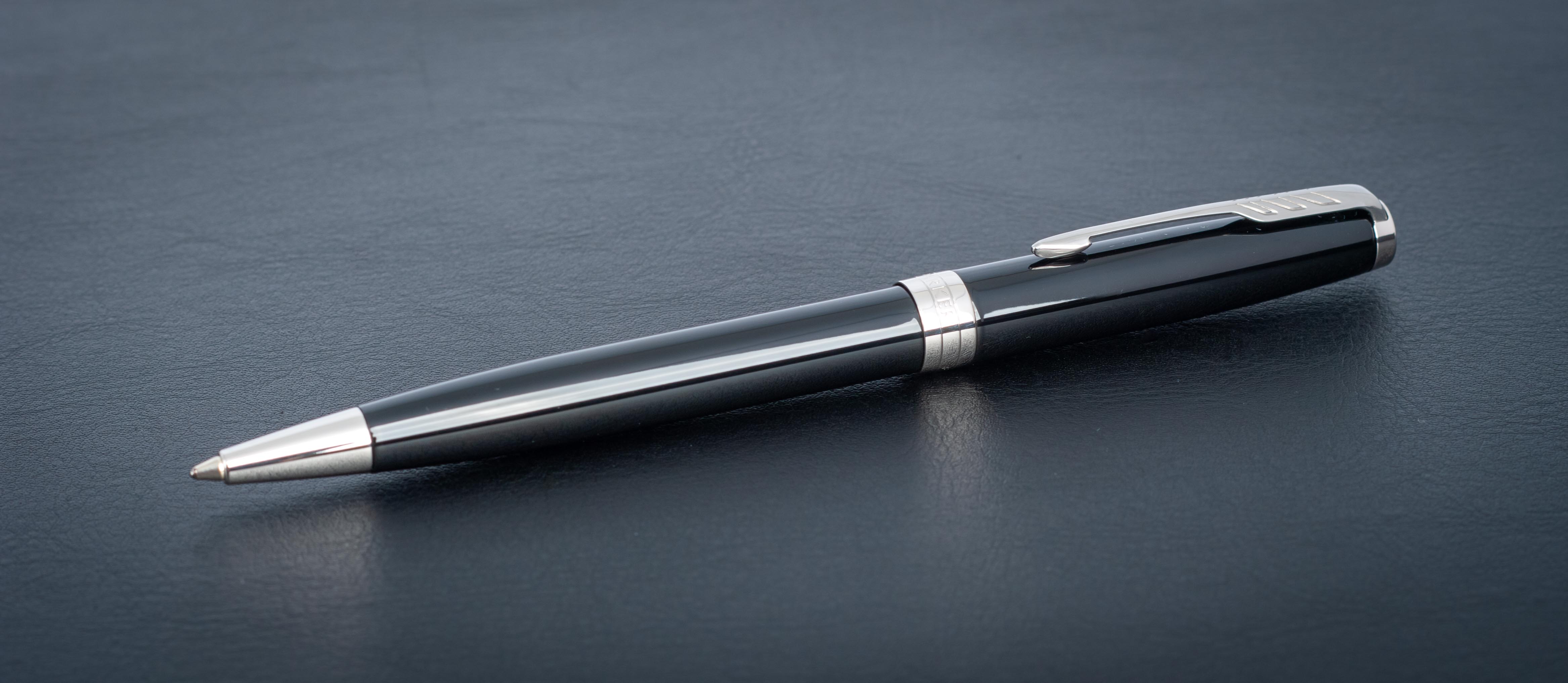 Ручка из основного ассортимента полностью обновленной коллекции Sonnet: более современный дизайн зажима на колпачке (теперь три широких пера вместо пяти узких в предшествующем варианте), измененный торец на колпачке, широкое кольцо на колпачке теперь состоит из 3 соединенных вместе колец, на среднем выполнена гравировка логотипа PARKER. Корпус шариковой ручки выполнен из ювелирной латуни и покрыт черным глянцевым лаком, а детали дизайна покрыты палладием. Ручка поставляется в новой подарочной коробке, которая соответствует основным принципам премиальной упаковки. На боковой стороне коробки нарисованы гербы - подтверждение гарантии Британского Королевского двора.